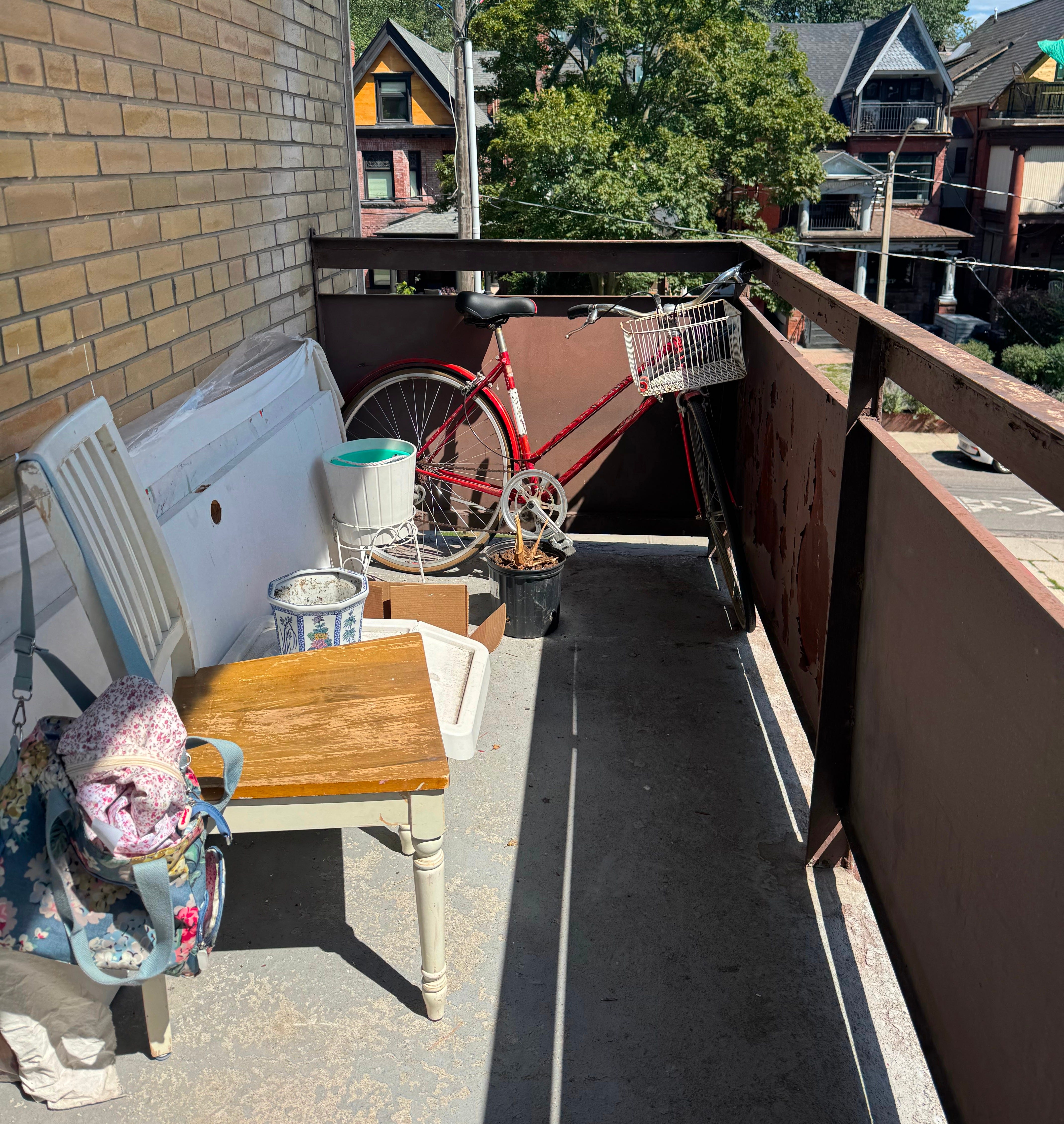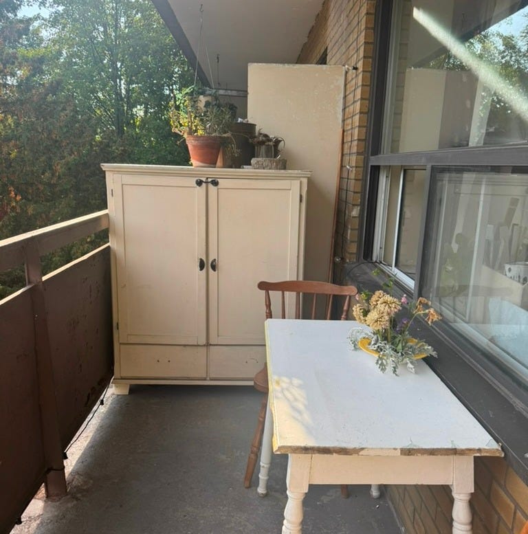 My balcony is much nicer now and I use it almost every day. The lights, which cost $50, and the table, which was free, made it a lovely place to eat and work. I mean, look at these before and afters.