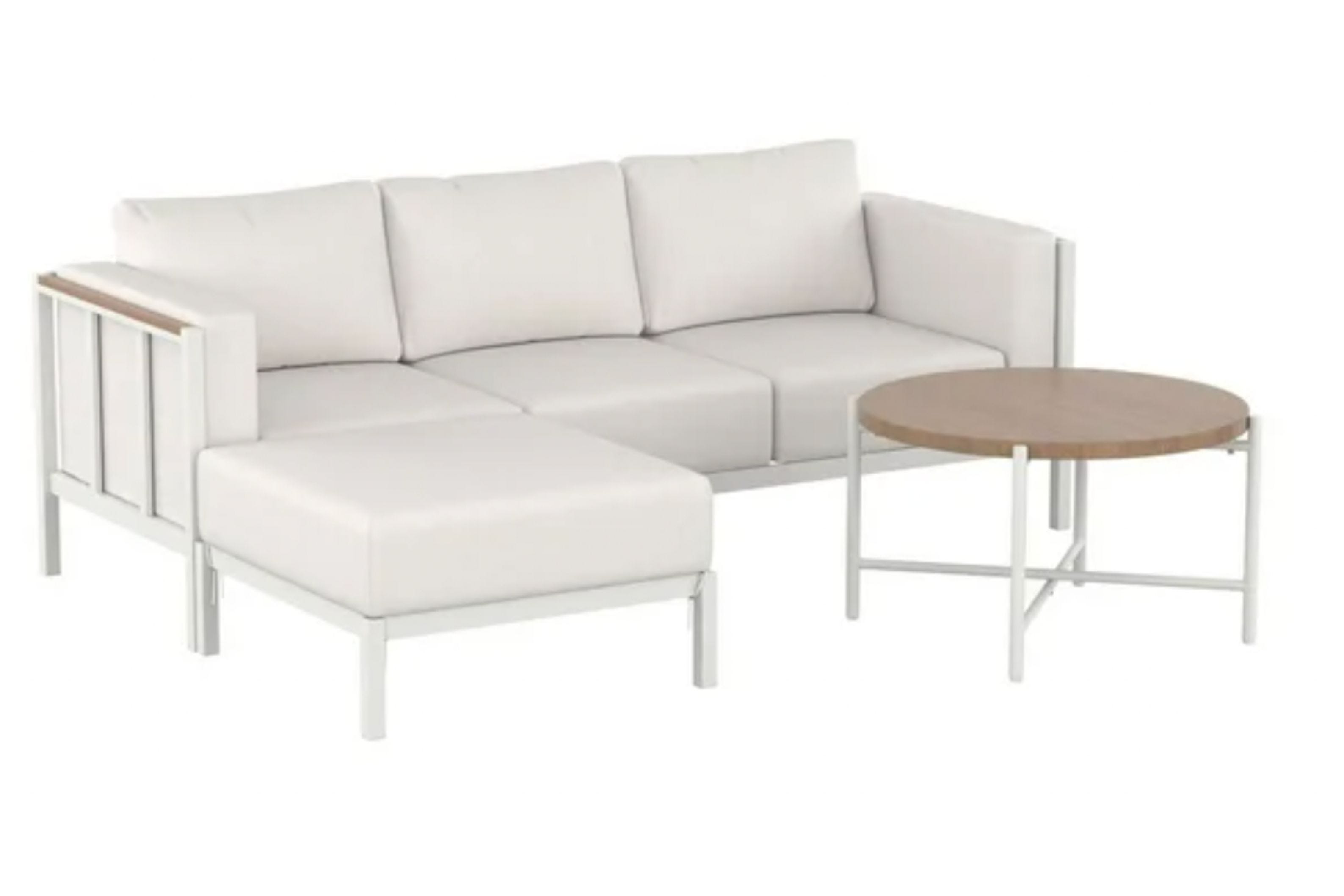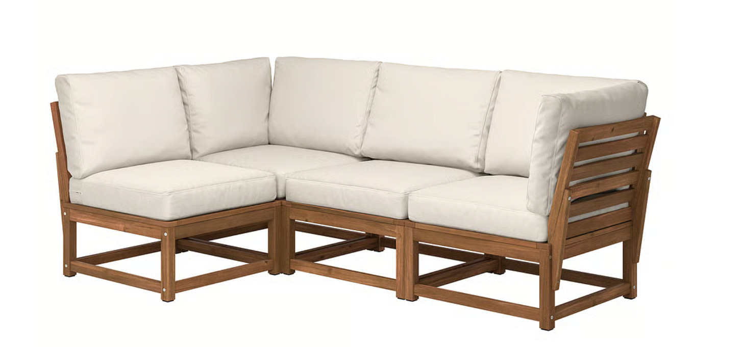 Obviously I needed those warm little Italian trattoria lights like the neighbours. Easy. And I already had a little table that could go outside. What I really needed is a luxurious plush place to stretch out. Common sense dictates that any old couch is perfect for a balcony, but common sense has left the chat. I go straight to the IKEA website and decide that the only thing that will make me happy is a NÄMMARÖ Modular corner sofa, 3-seat, outdoor light brown stained/Frösön/Duvholmen beige.